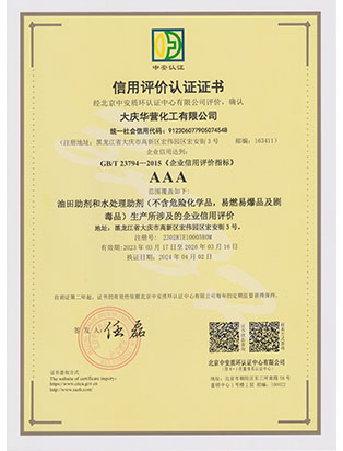 大慶華營化工有限公司成立于2006年7月10日,注冊資金3300萬元,公司類型為有限責(zé)任公司。位于大慶高新技術(shù)產(chǎn)業(yè)開發(fā)區(qū)宏偉園區(qū),是一家集油田助劑產(chǎn)品的研發(fā)、生產(chǎn)、銷售和技術(shù)服務(wù)為一體的現(xiàn)代化高新技術(shù)企業(yè)。公司注重科技創(chuàng)新,公司擁有18項自主知識產(chǎn)權(quán)。企業(yè)承擔(dān)過國家火炬計劃重點項目、國家科技型中小企業(yè)創(chuàng)新項目等,2011年被科技部火炬高新技術(shù)產(chǎn)業(yè)開發(fā)中心評為國家火炬計劃重點高新技術(shù)企業(yè)。公司十余種產(chǎn)品獲得中國石油天然氣集團公司產(chǎn)品質(zhì)量認可證書,其中粘穩(wěn)型驅(qū)油劑獲國家火炬計劃重點項目證書。公司憑借多年對大慶油田及周邊油田地質(zhì)情況的研究,可針對各油田地層特點調(diào)整產(chǎn)品的配方,更好地發(fā)揮各類油田助劑的性能。